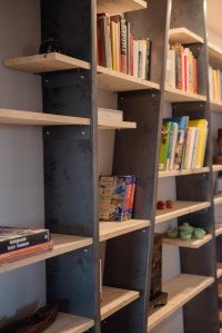 La zona di ingresso acquisisce una nuova luminosità e soprattuto profondità. Ad arricchire questa area è stata progettata una libreria in ferro naturale e legno.