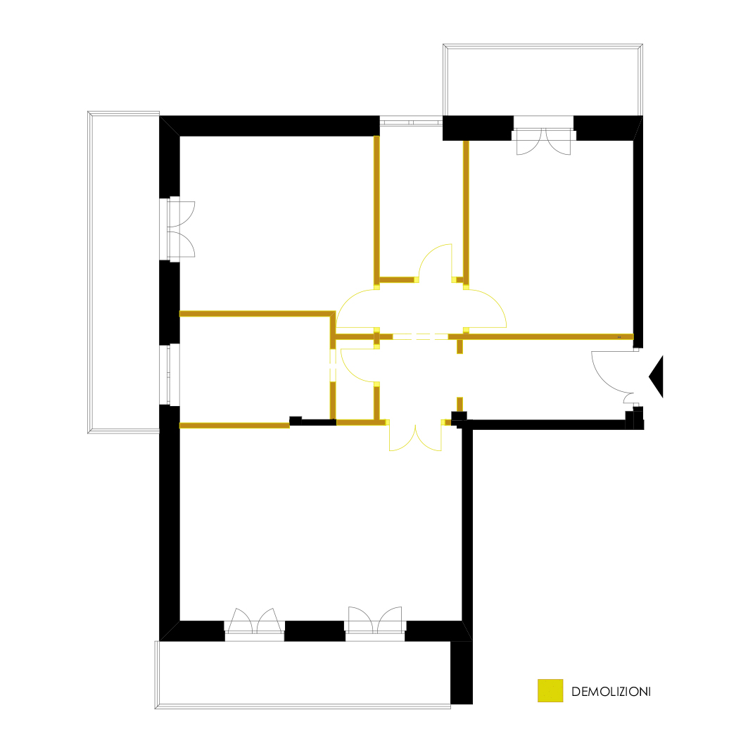 Nella seconda proposta l’appartamento subisce una radicale modifica degli spazi interni. La zona notte e la zona giorno vengono invertite.